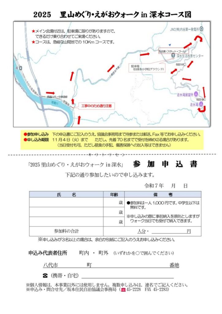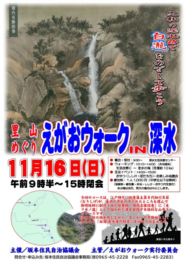 坂本町の各地域をめぐり、その素晴らしさを実感・体感する「えがおウォーク」が今年も開催されます。